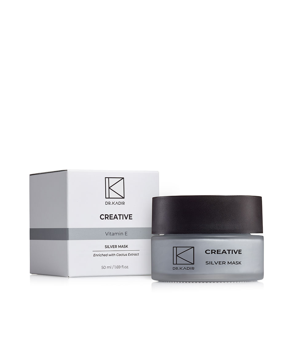 מסכה קרמית עשירה, כמעט ואינה מתייבשת על העור, בעלת מרקם נעים וצבע כסף מרהיב.