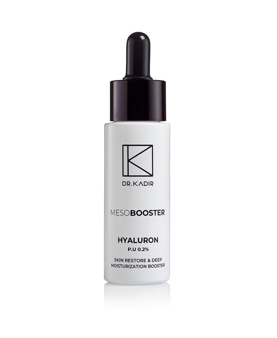 Meso Booster Hyaluron מכיל 0.2% PrimalHyal™ Ultrafiller – חומצה היאלורונית מתקדמת, לצד רכיבים פעילים נוספים התורמים ללחות, הרגעה ושיקום העור.